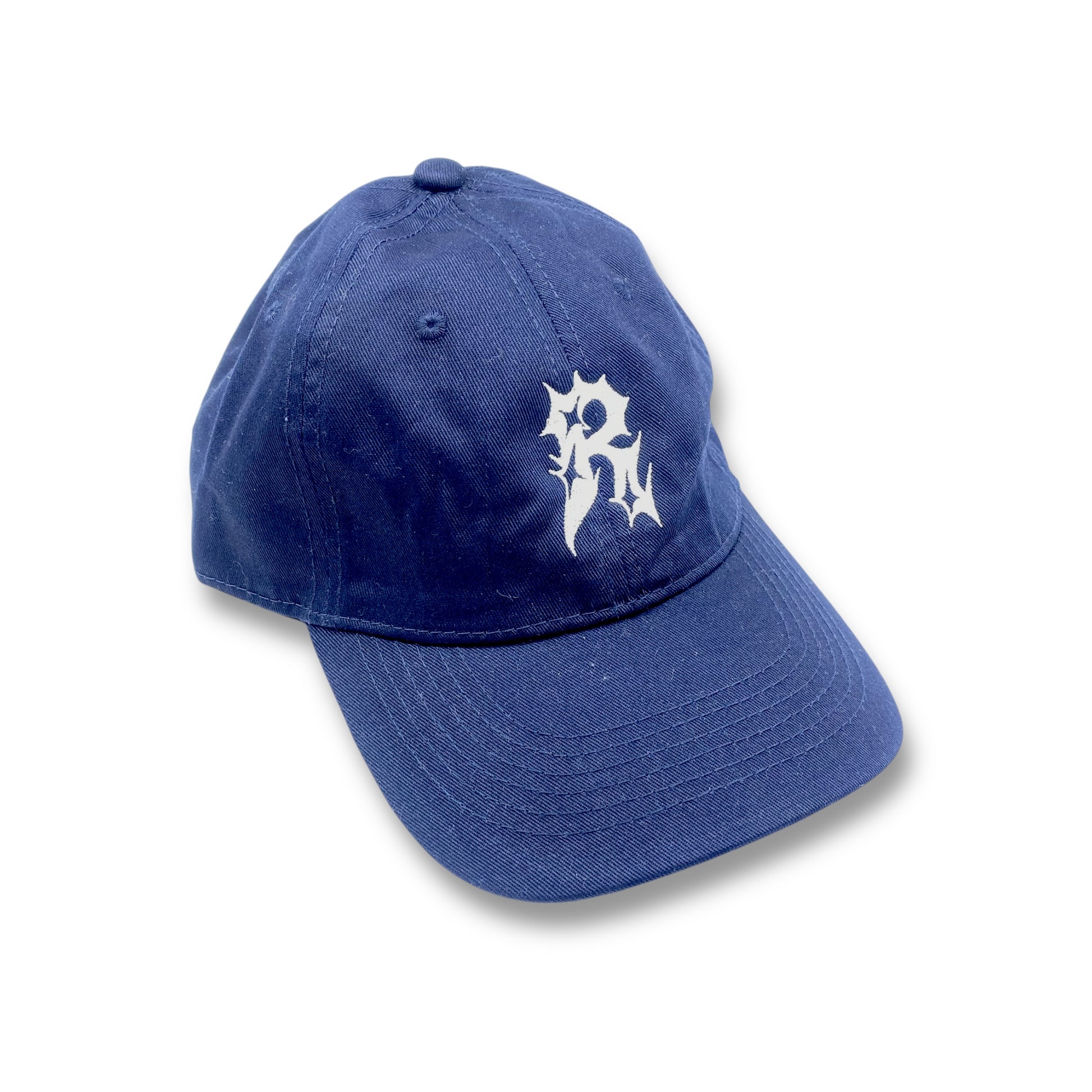 Gorra azul oscuro Ruins brilló; 100% algodon con fino bordado en hilo blanco.