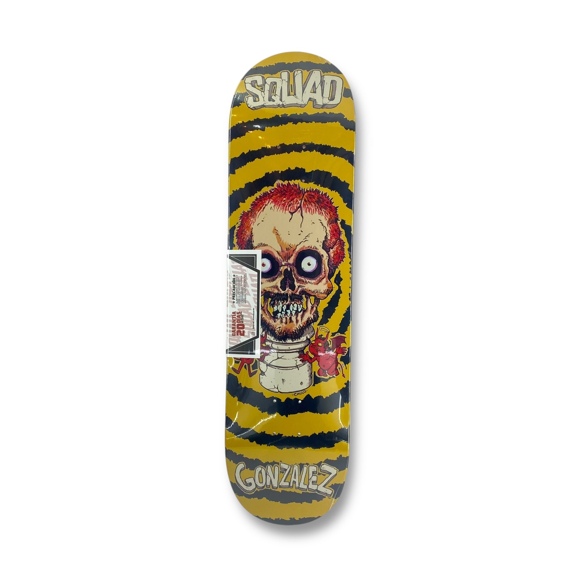 Tabla squad Grafico calavera amarillo; cóncavo medio; 7 capas de maple canadiense, importado, 100% original. Garantía de 30 dias por desprendimiento o despegue de capas.
